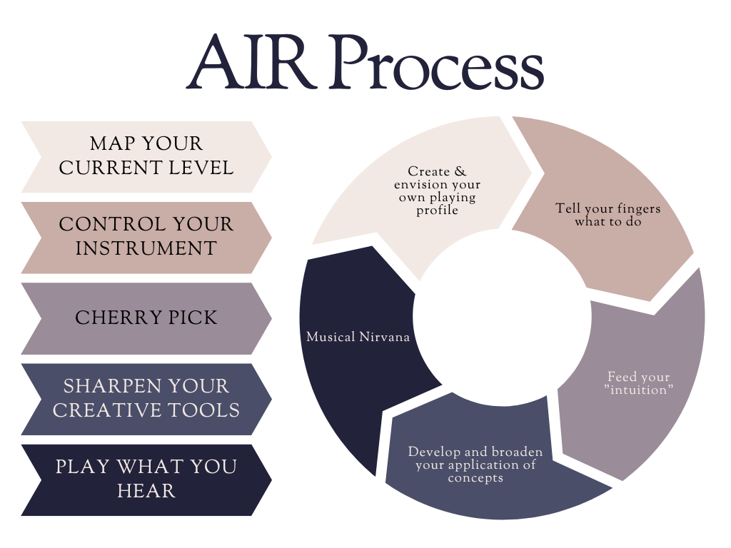 So we continued studying, working, transcribing and analyzing and after many years of doing that (and even going back to the conservatory), we came up with our system. A system based on what all the legendary players displayed in the transcriptions we made of them. A system for you to recreate and follow your own path to being able to play what your hear inside of you.