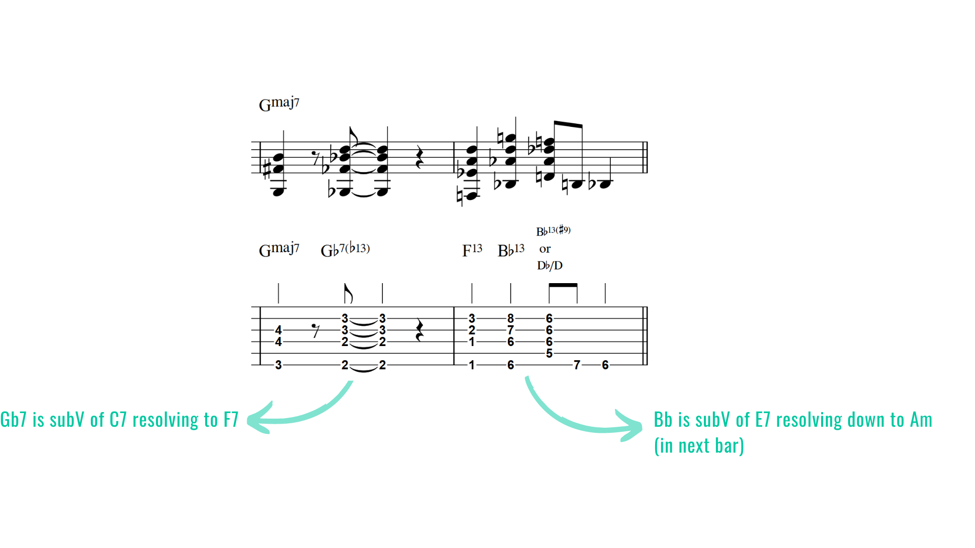 So you can replace a dominant chord not only with a dominant a tritone away, but also a minor 3rd away in either direction. Which is what's happening here.